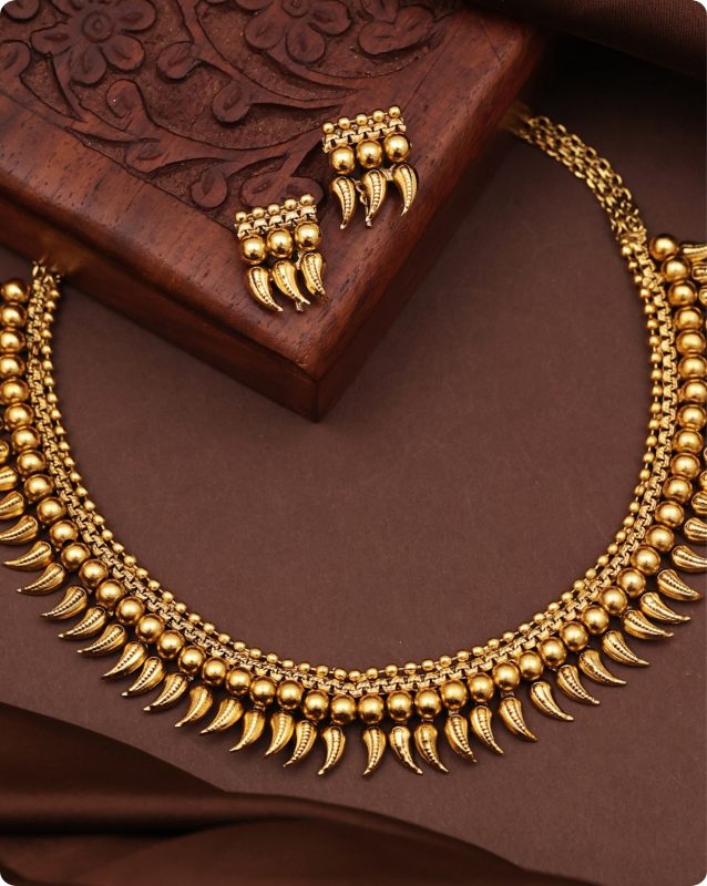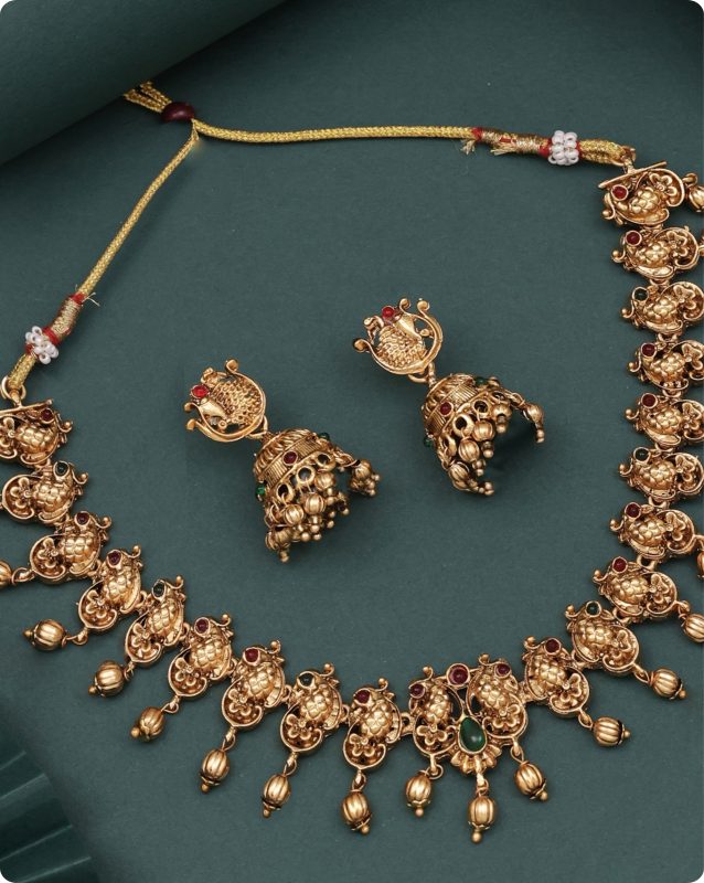 Antique Gold Necklace Set with Jhumka Earrings for Women and Girls