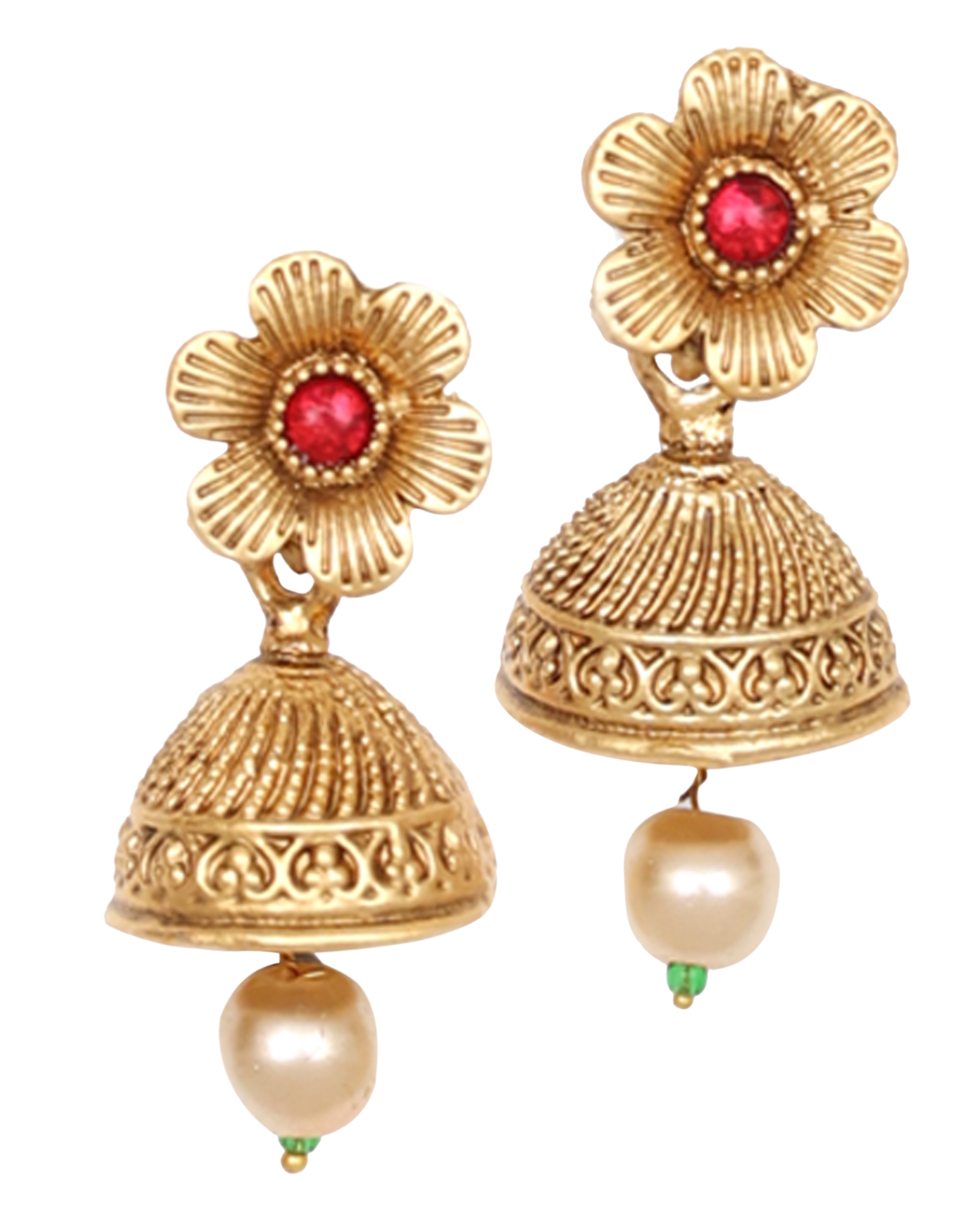 Traditional Indian Red Stone Necklace and Earrings Jewellery Set with Green Centre Stone Original price was: ₹1,499.00.Current price is: ₹749.00.