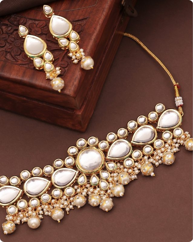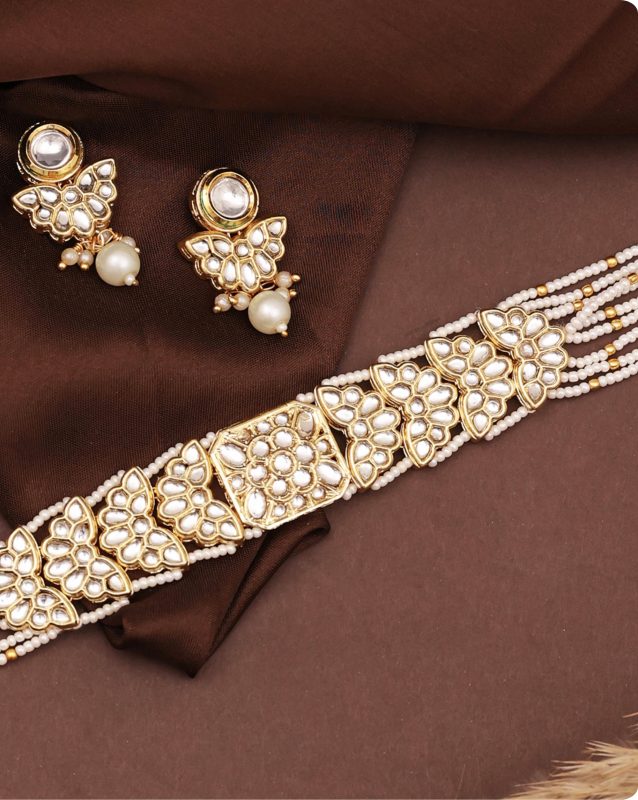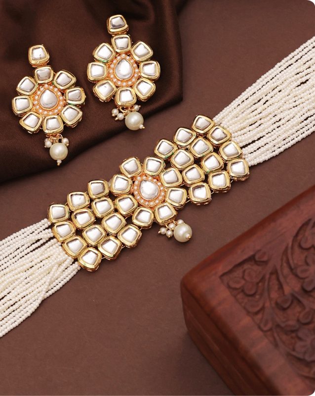 Pearl and Kundan Choker Necklace Set with Delicate Earrings