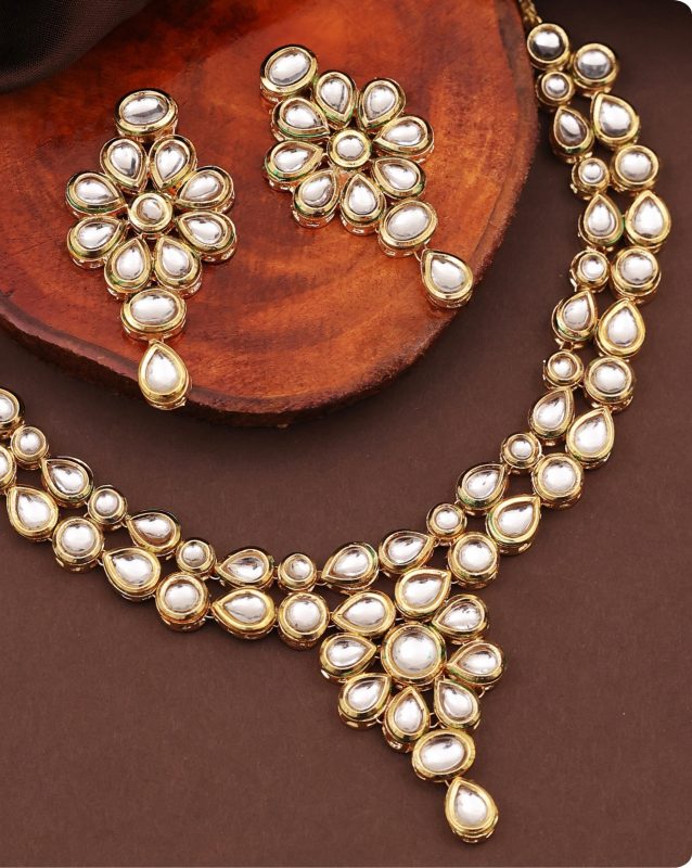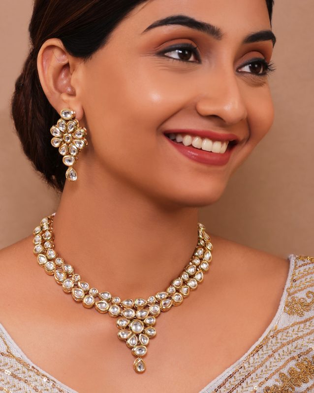 Statement Polki Kundan Necklace Set with Long Drop Earrings