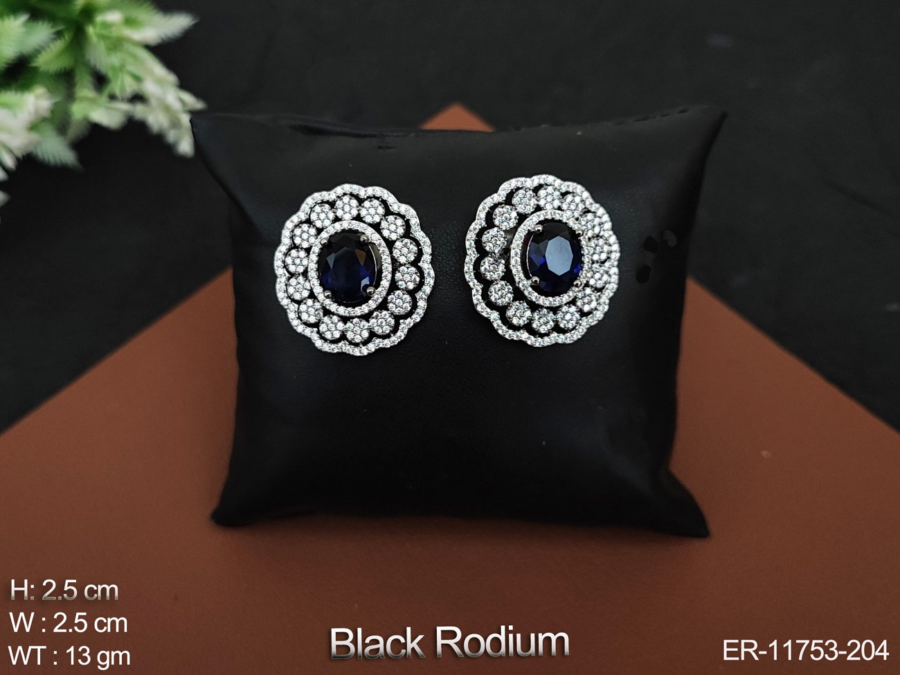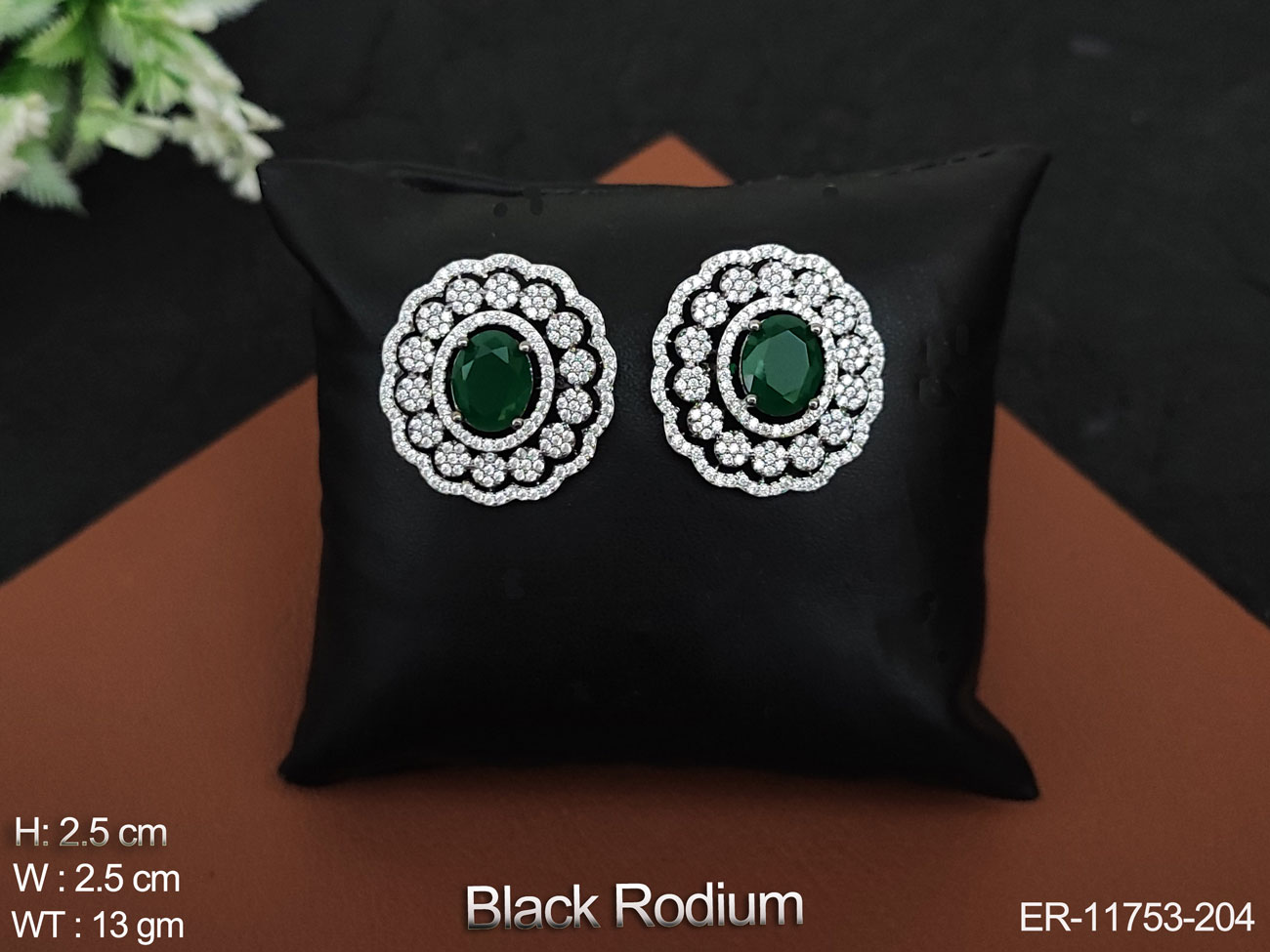 Cz Ad Stones Black Rodium Polsih Party wer Designer American Diamond Earring Studs Tops