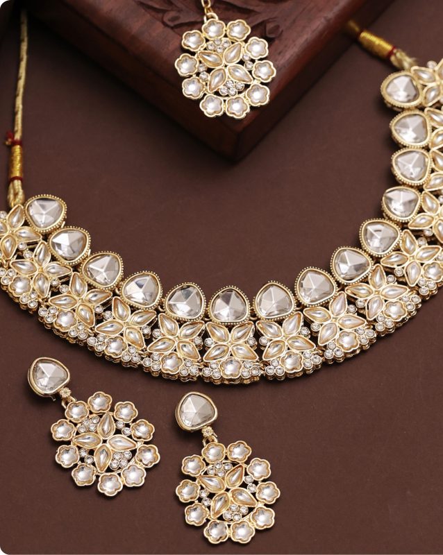 Traditional Heavy Kundan Necklace Set with Earrings and Maang Tikka