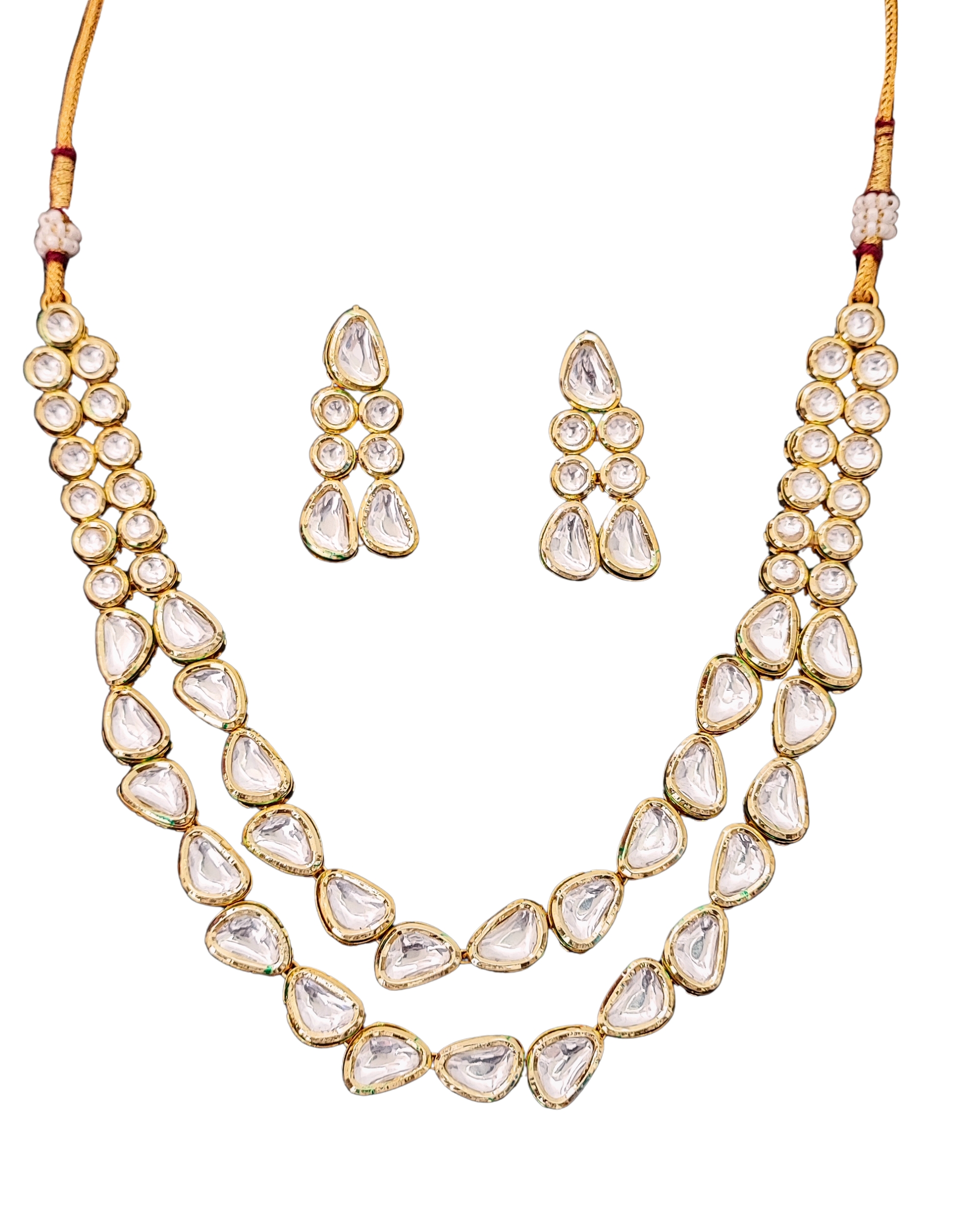 *Double-layer Polki Kundan necklace with coordinated earrings