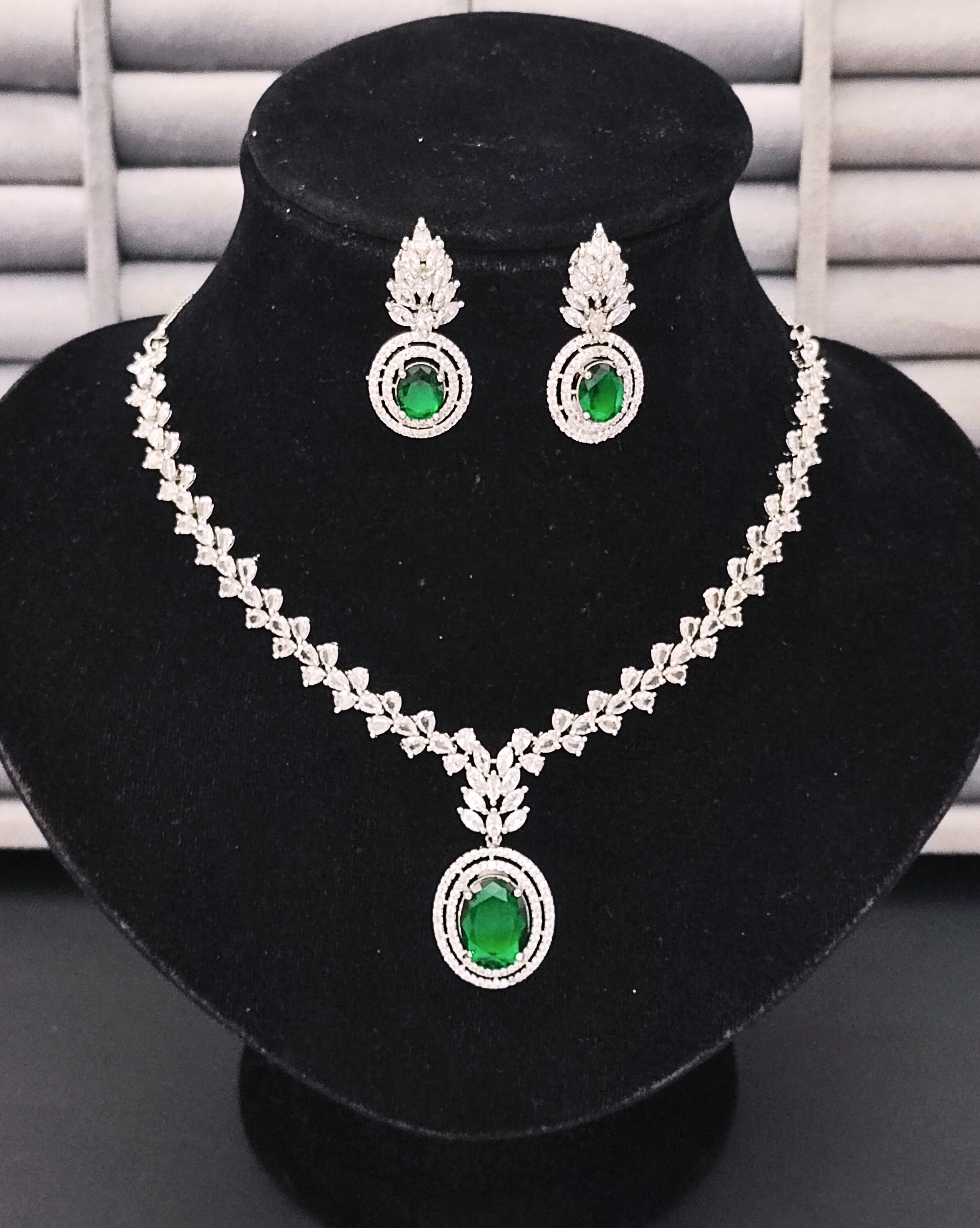 Be the first to review “Elegant Green Stone & CZ Delicate Diamond Necklace Set for Women”