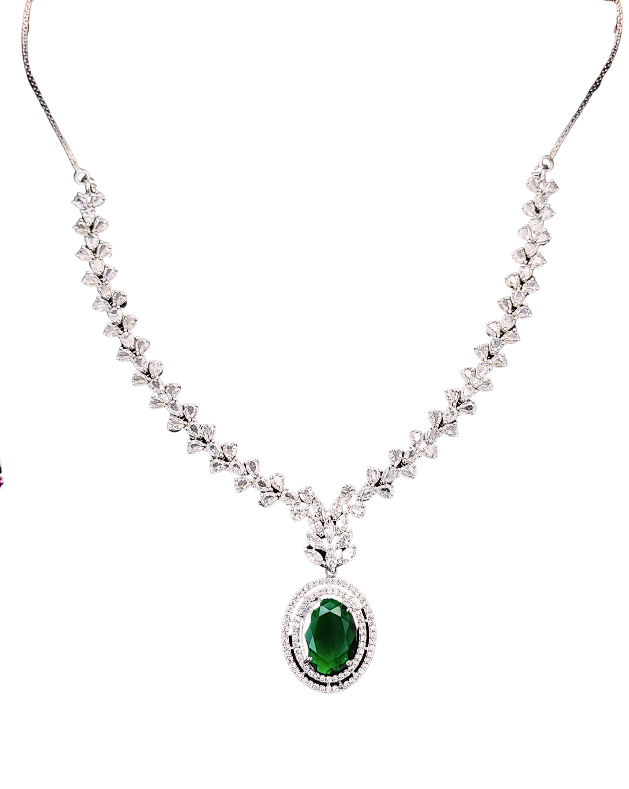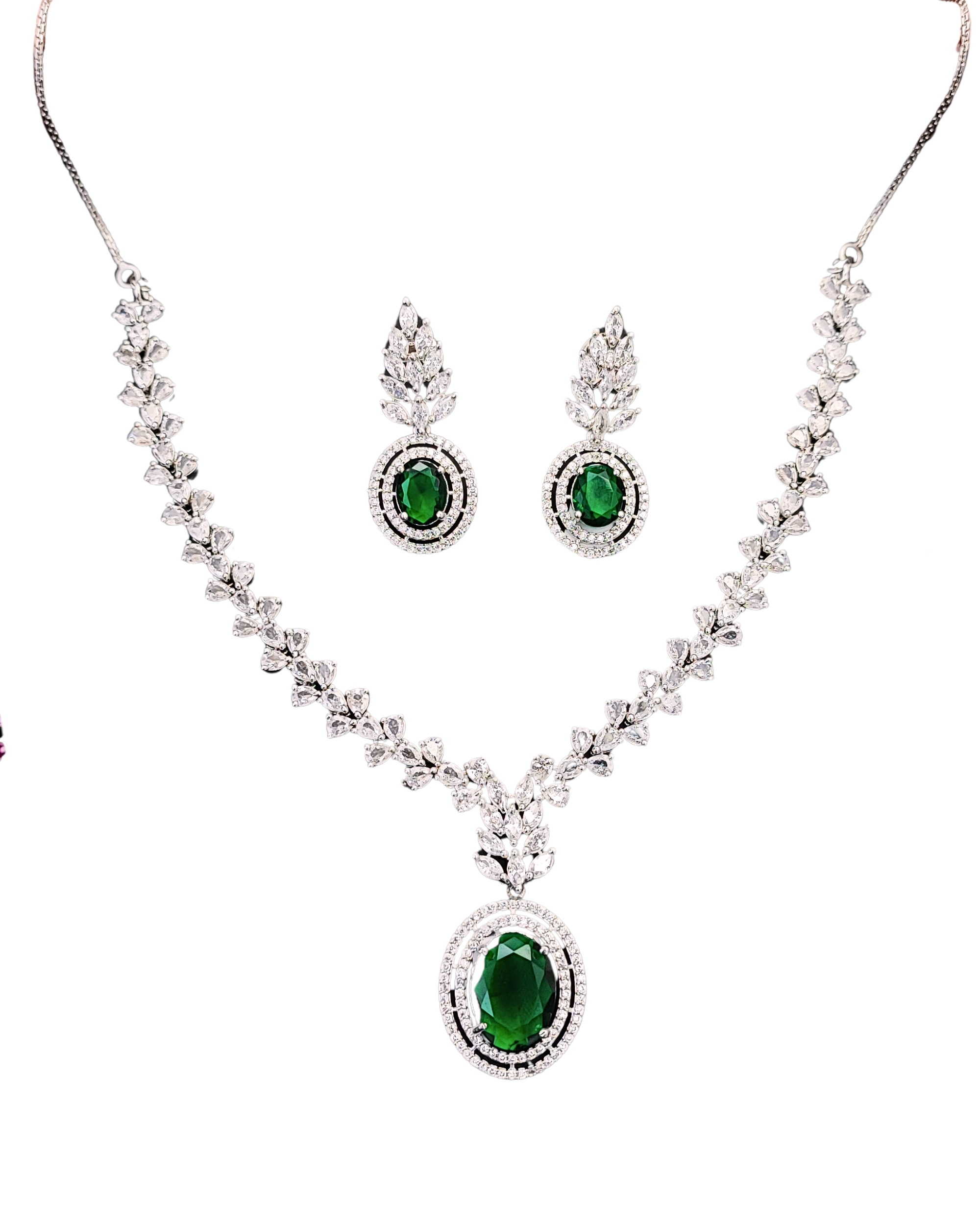 Elegant Green Stone & CZ Delicate Diamond Necklace Set for Women