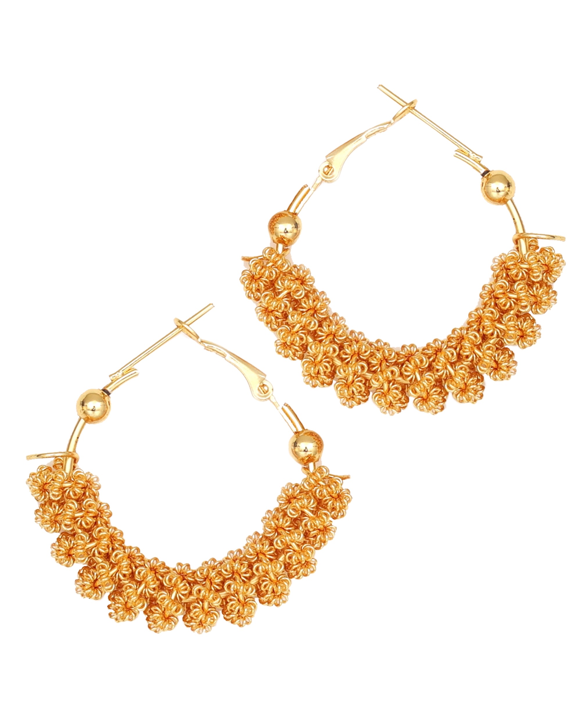 Gold-Plated Floral Design Necklace and Hoop Earrings Set