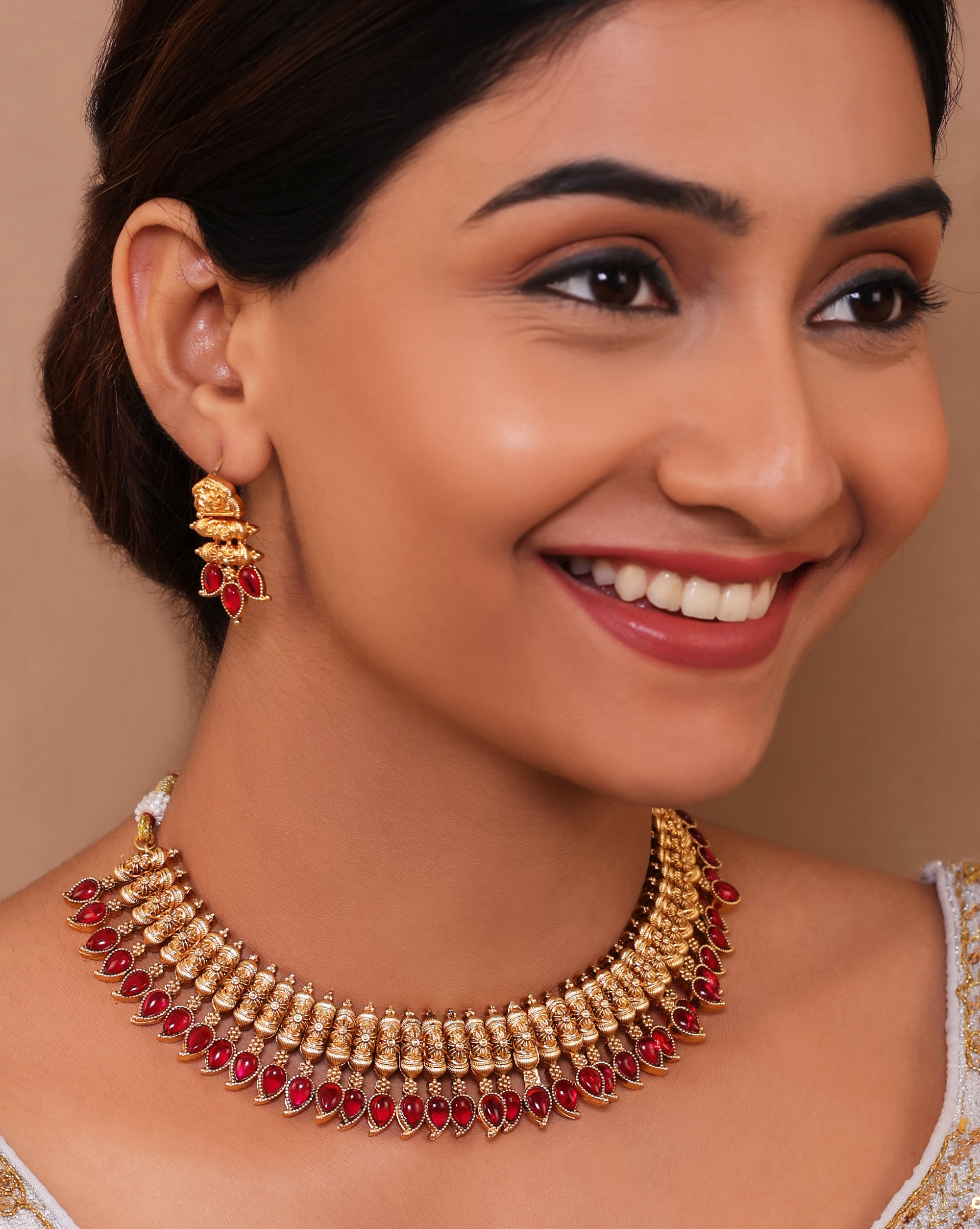 High Gold-Plated Antique Design Ruby Choker Set