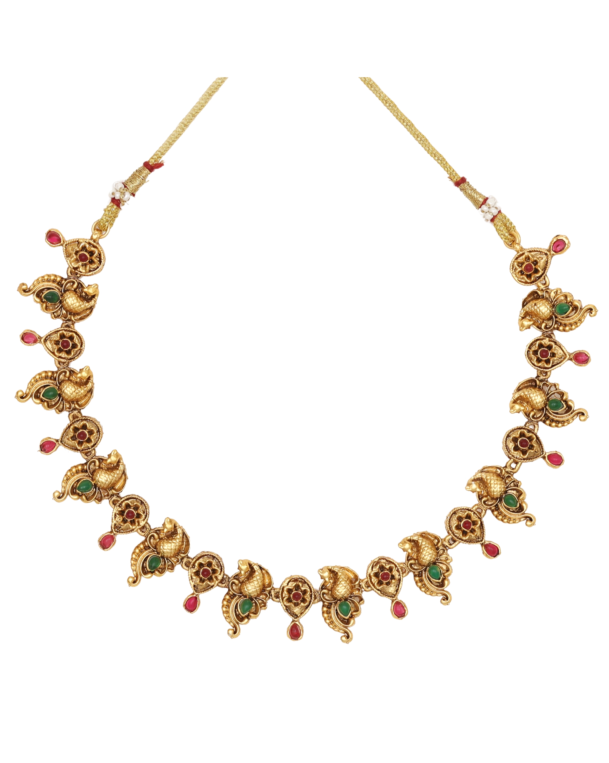 Antique Gold Necklace Set with Jhumka Earrings for Women and Girls