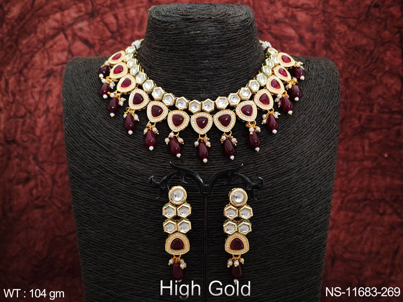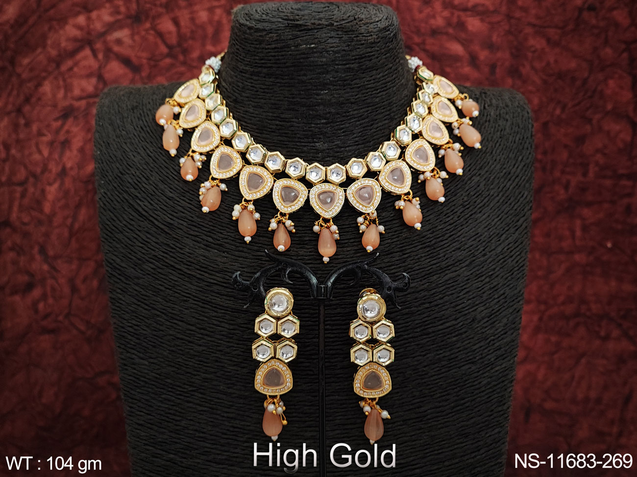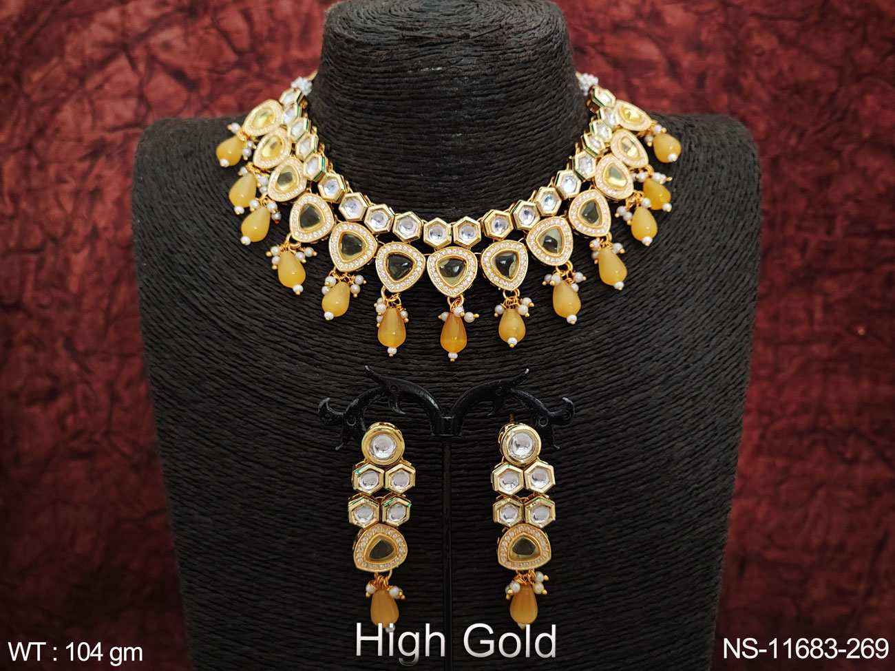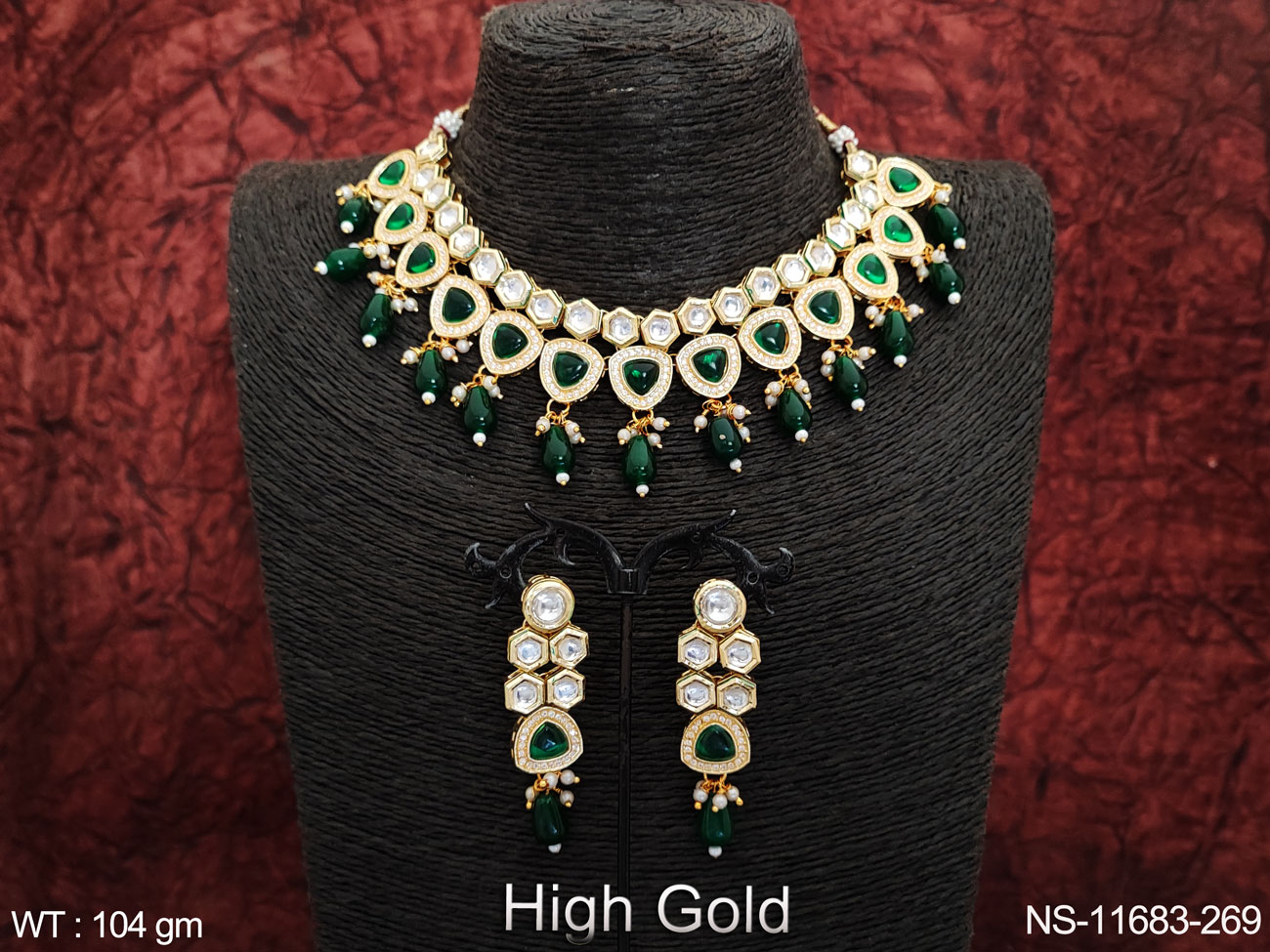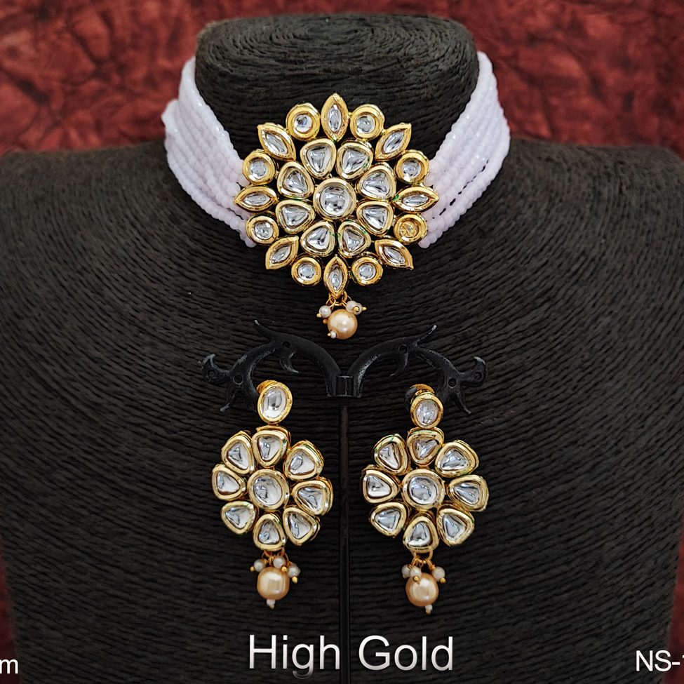 High Gold Polish Clustered Pearl Kundan Stones Party wear Beautiful Kundan Choker Necklace Set