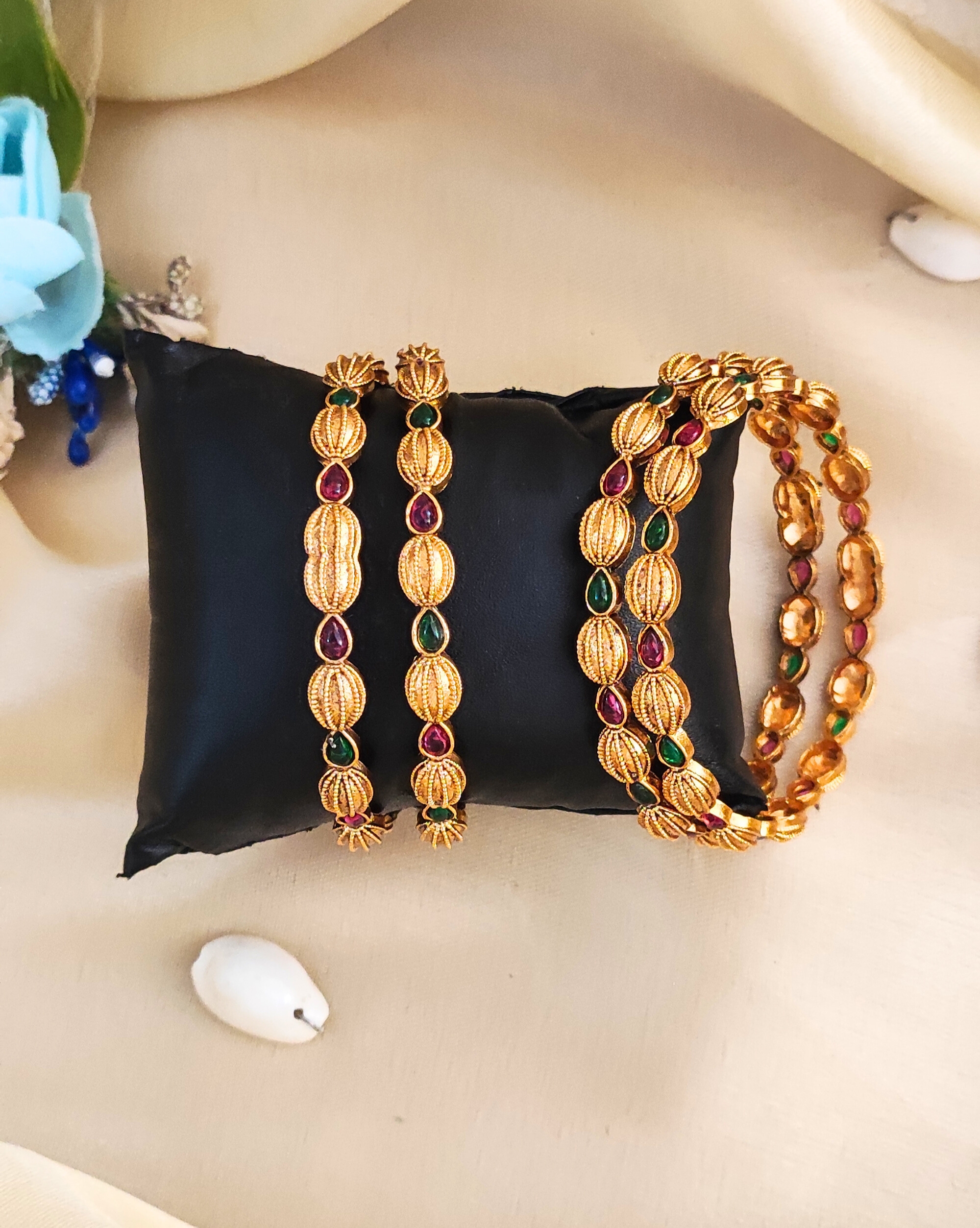 Be the first to review “Matte High Gold-Plated Bangle with Ruby and Emerald Stones, Indian Ethnic Design (Set of 4)”