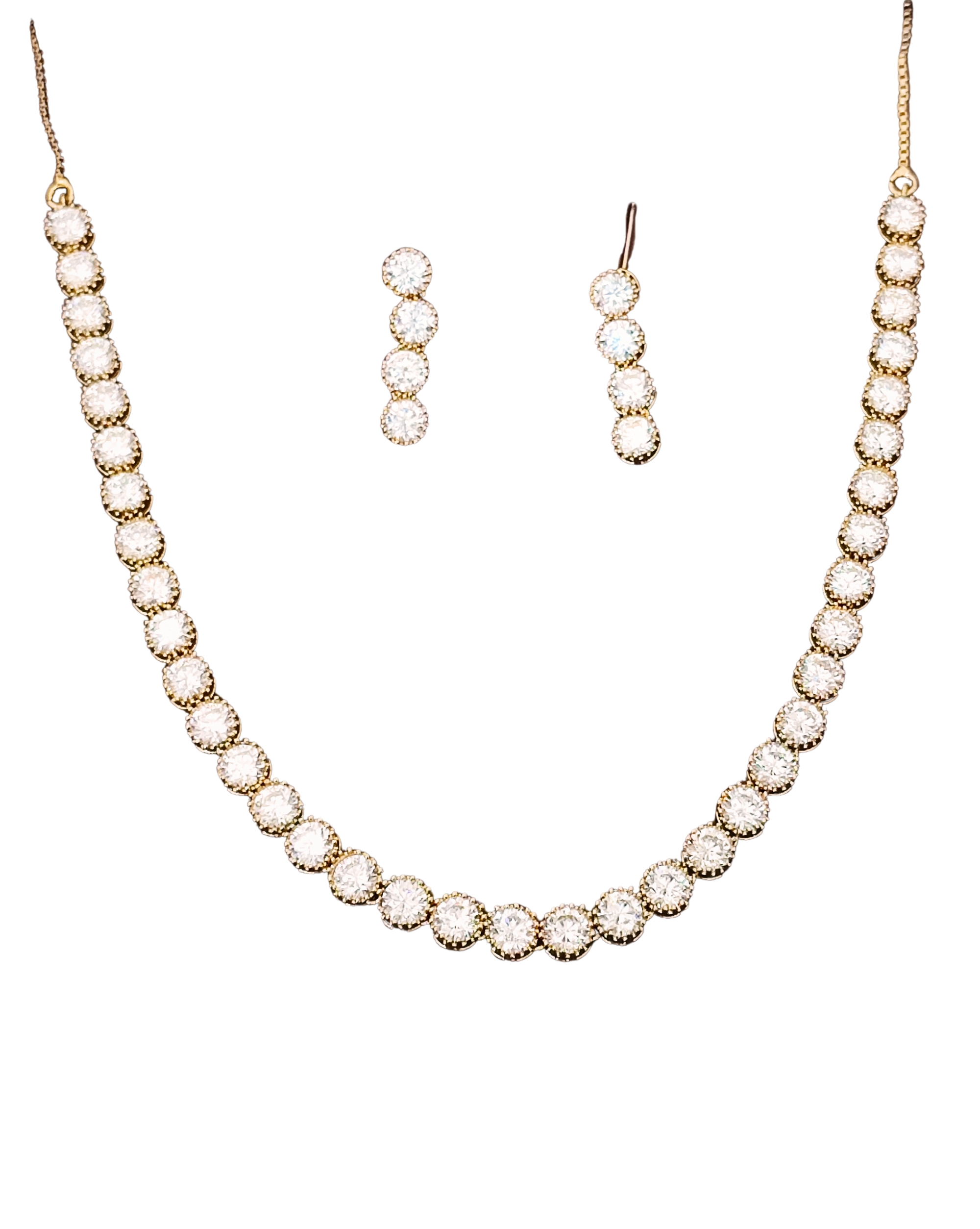 Mehendi Polish CZ Diamond Necklace & Earrings Set – Antique Ethnic Finish for Traditional Charm