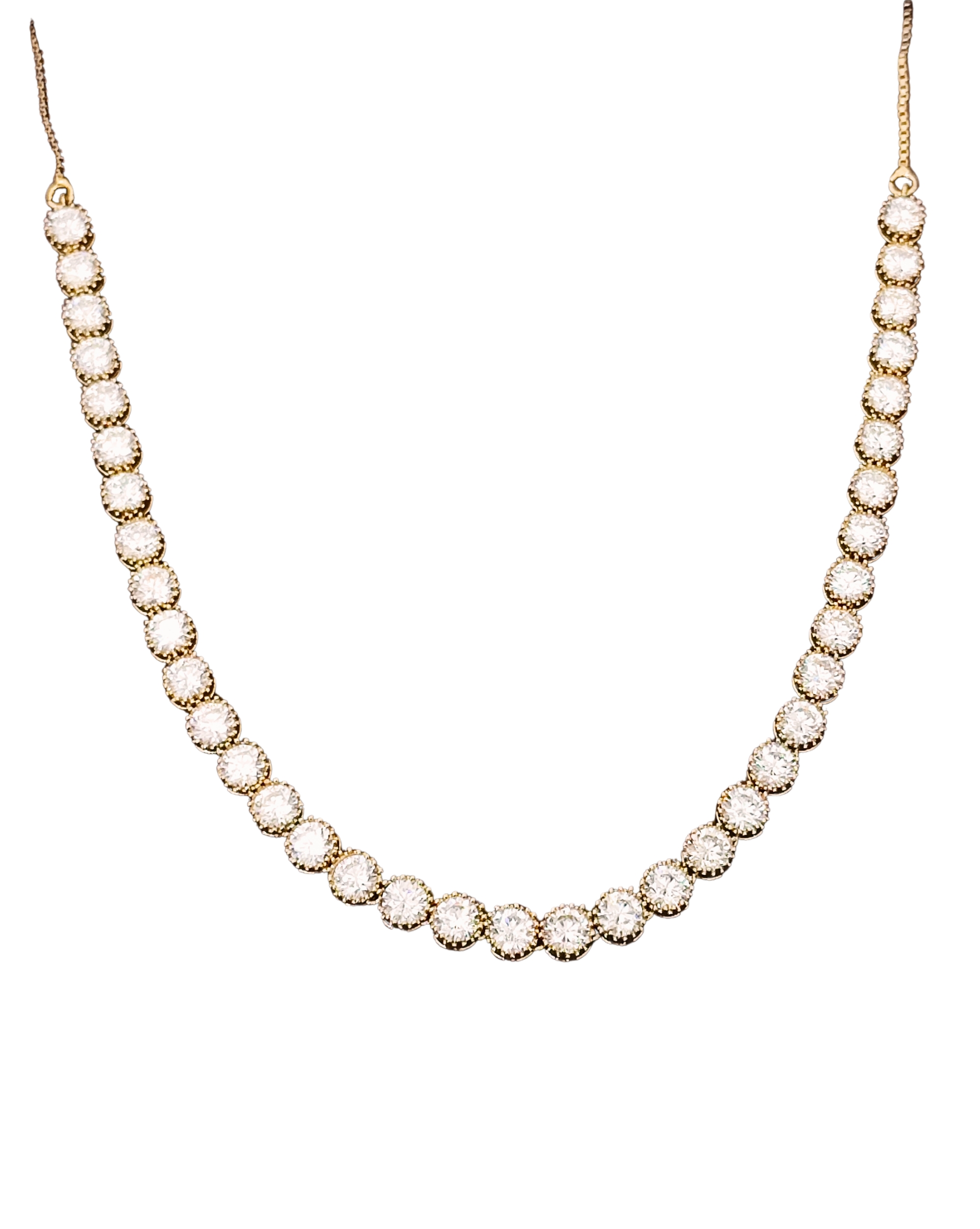 Add a traditional touch with a twist through this mehendi-plated single-line diamond necklace set. The earthy green-gold finish enhances its ethnic charm, making it ideal for cultural events or festive occasions. The delicate stones catch the light beautifully, offering a refined sparkle that complements the rich plating. Paired with matching earrings, this set offers both grace and durability, making it a go-to choice for those who love classic styles with contemporary flair.