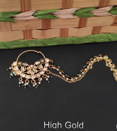 Beautiful High Gold Polish Fancy Style Kundan Nath