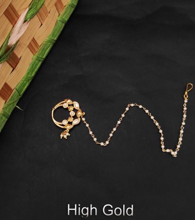 Clustered Pearl Designer Fancy Style High Gold Polish Party wear Kundan Nath