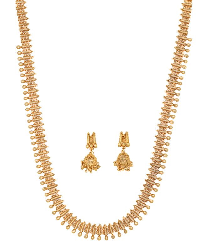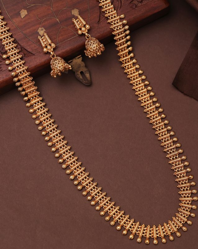 High Gold-Plated Long Necklace Set with Jhumka Earrings
