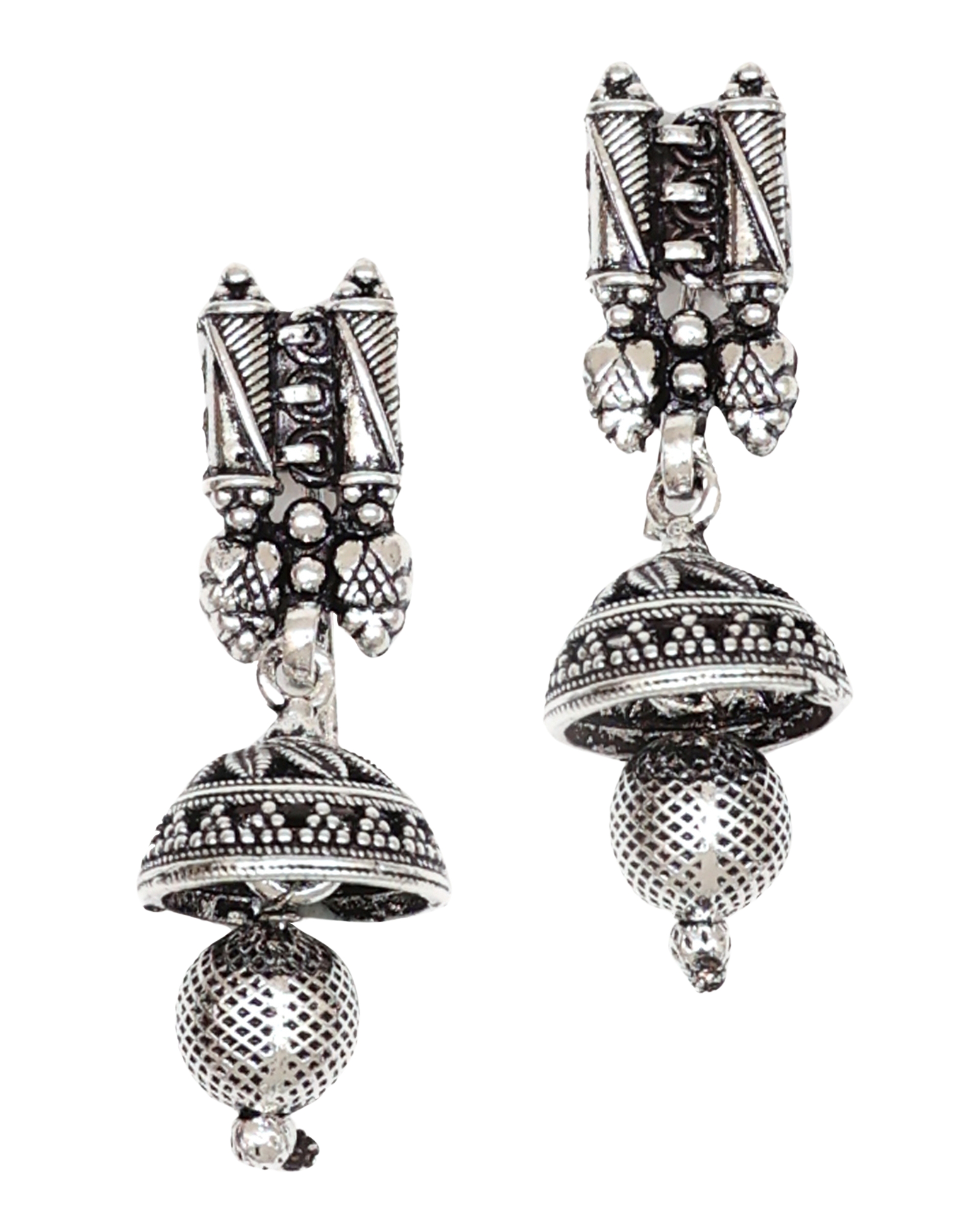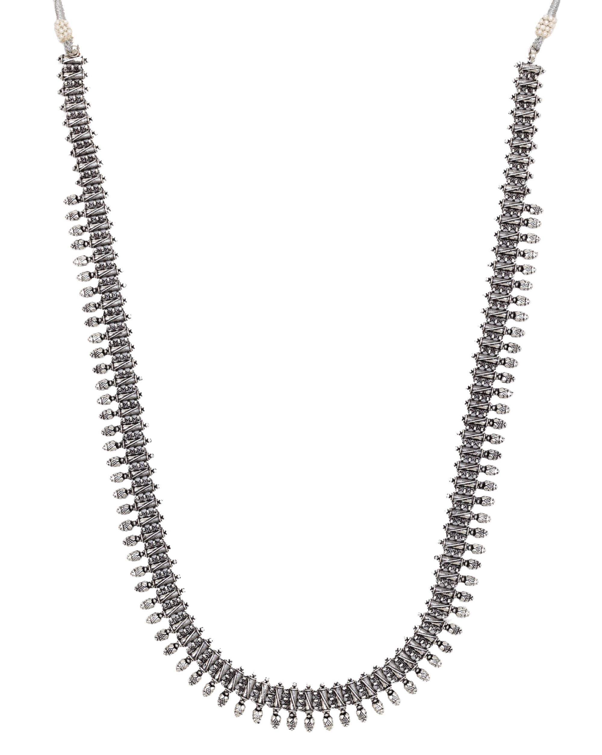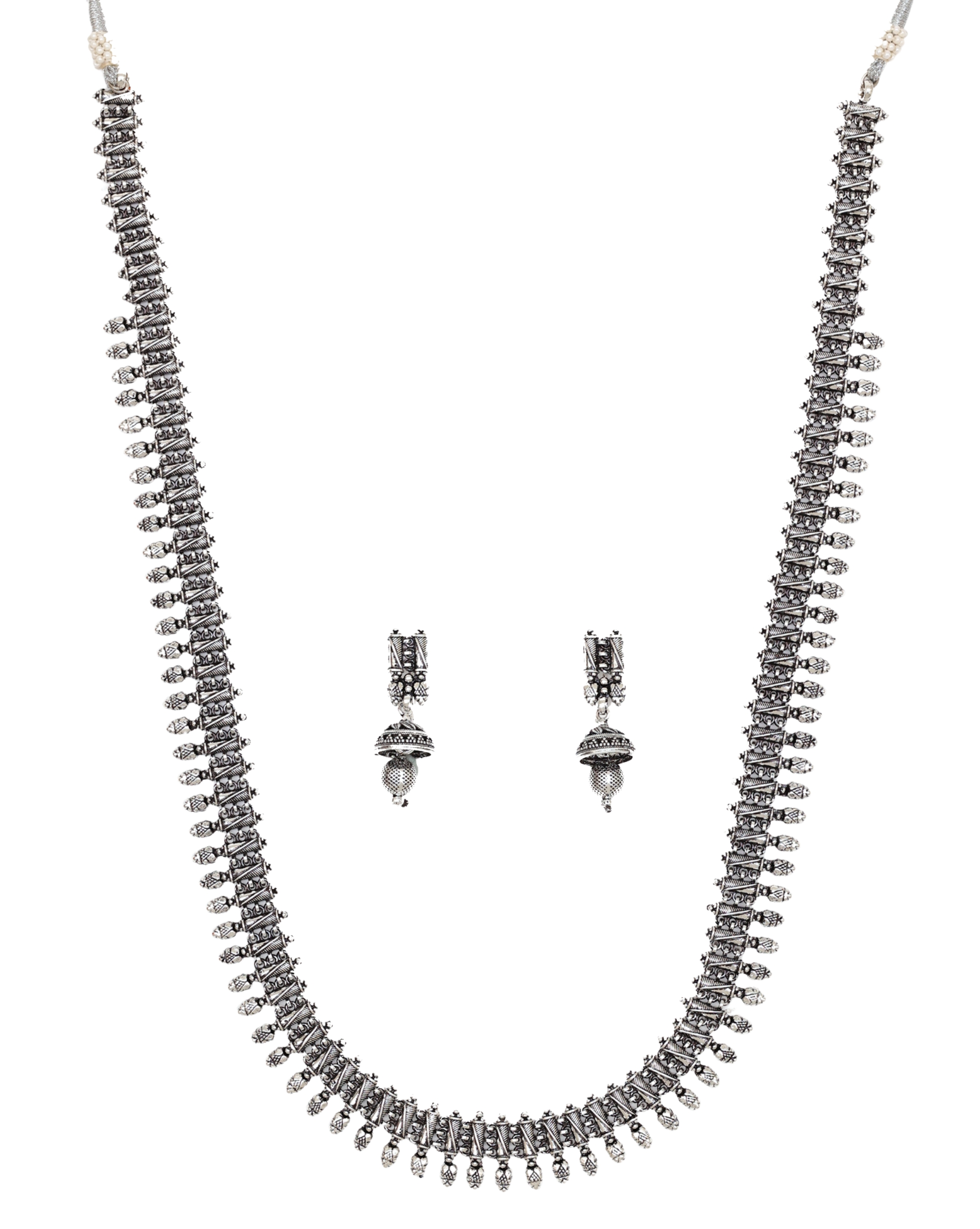 Oxidised Alloy Temple Design Long Necklace and Jhumka Earring Set
