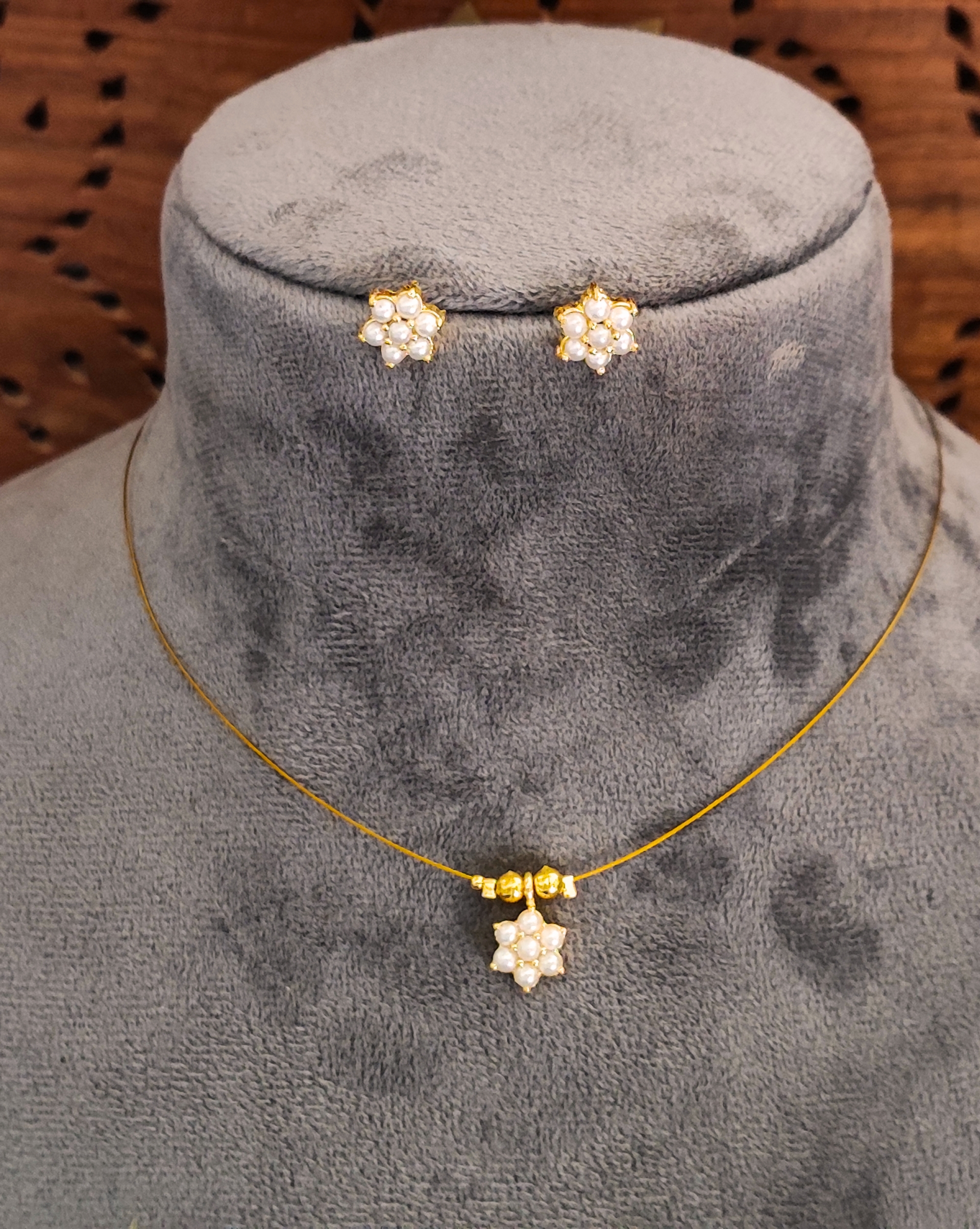 Pearl Design Flower Delicate Necklace and Earrings Set for Her