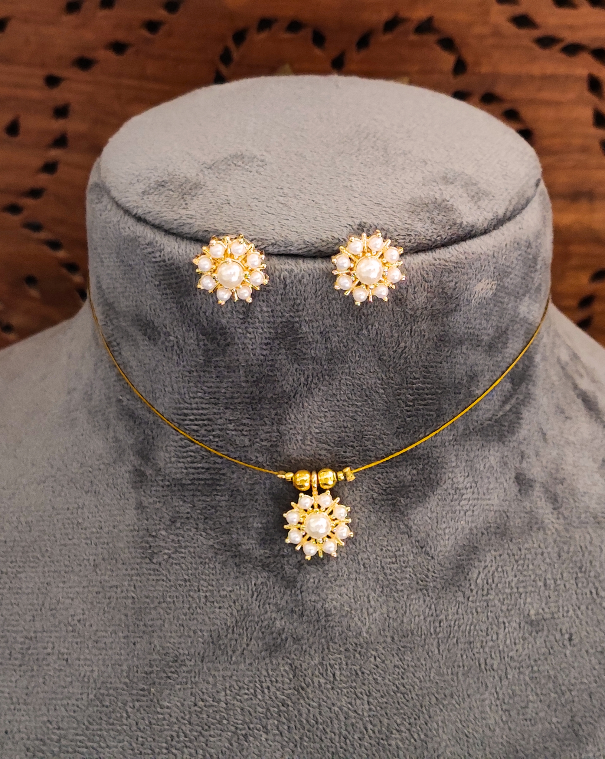 Pearl Flower Jewellery Set with Gold-Plated Necklace and Earrings for Women and Girls