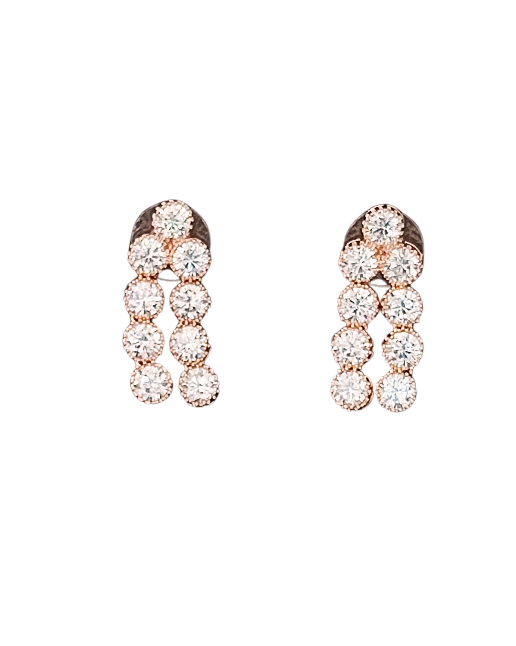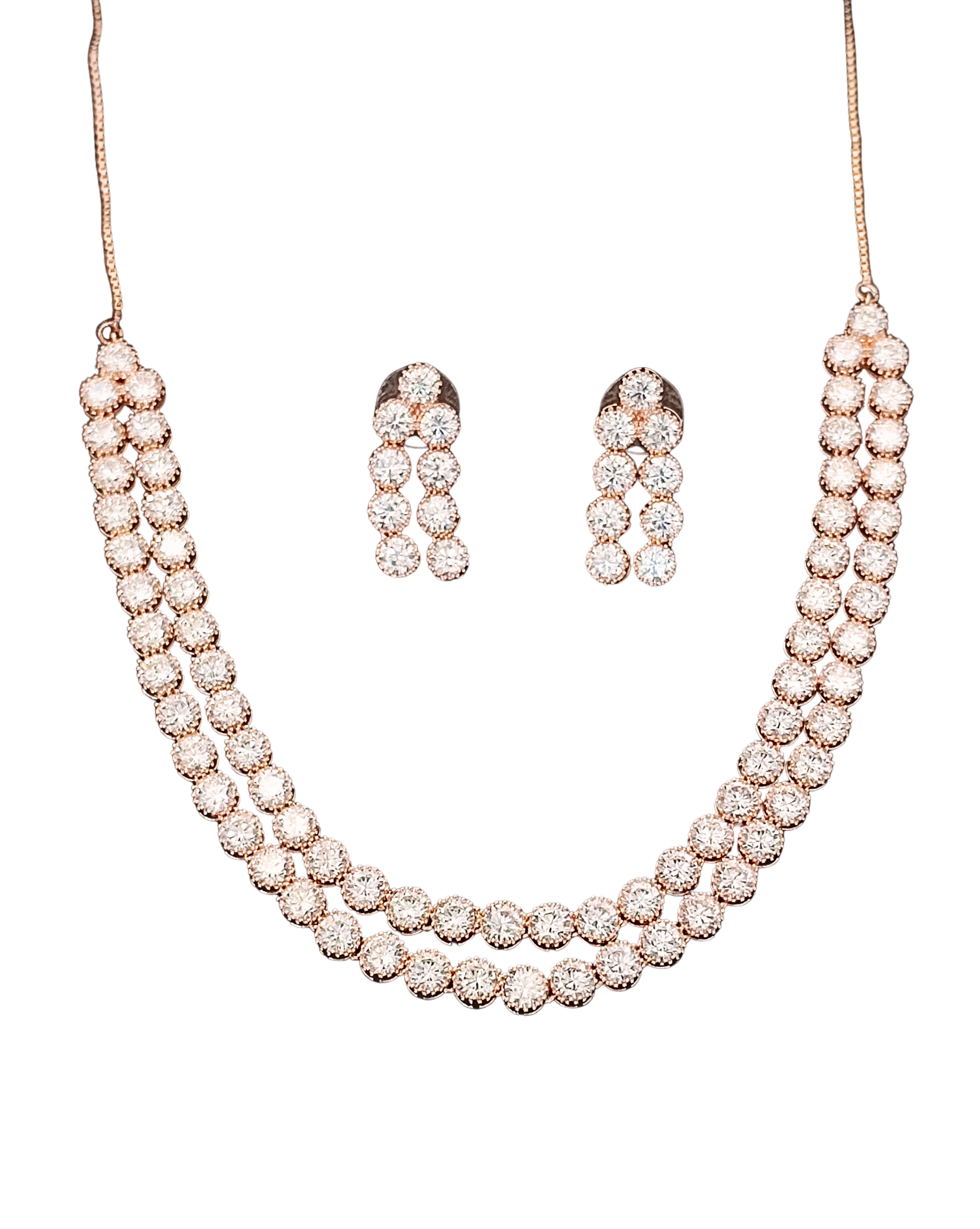 Rose Gold Double Line CZ Diamond Necklace with Earrings – Modern Glamour Jewelry for Evening & Bridal Wear