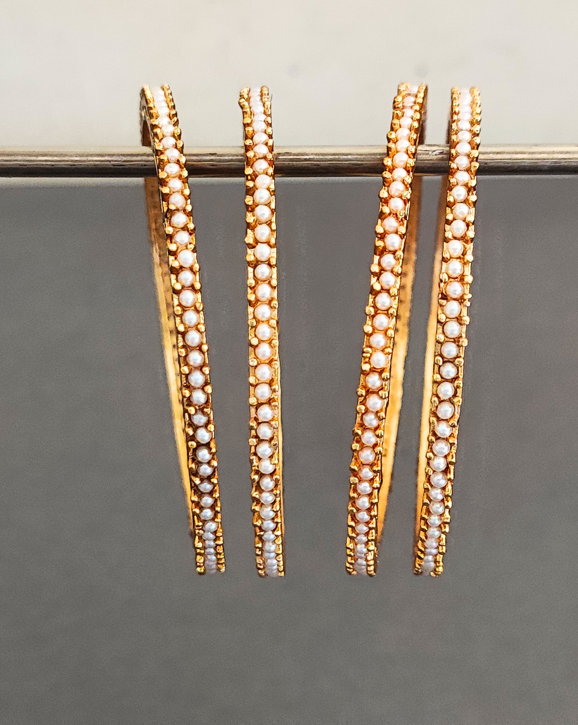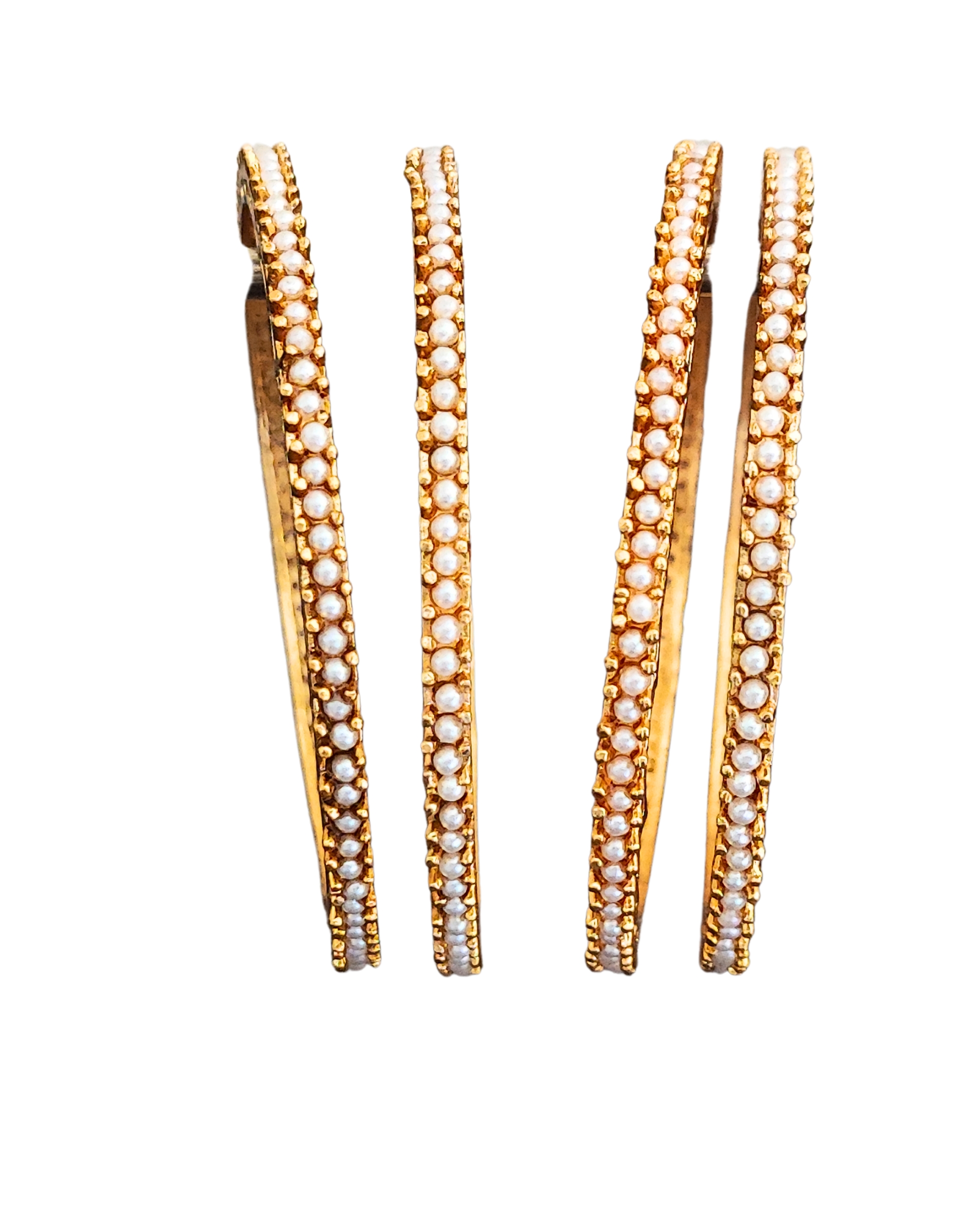 Traditional Gold Plated Pearl Bangles Set for Women, Premium Quality Imitation Jewelry with Intricate Detailing (Set of 4)