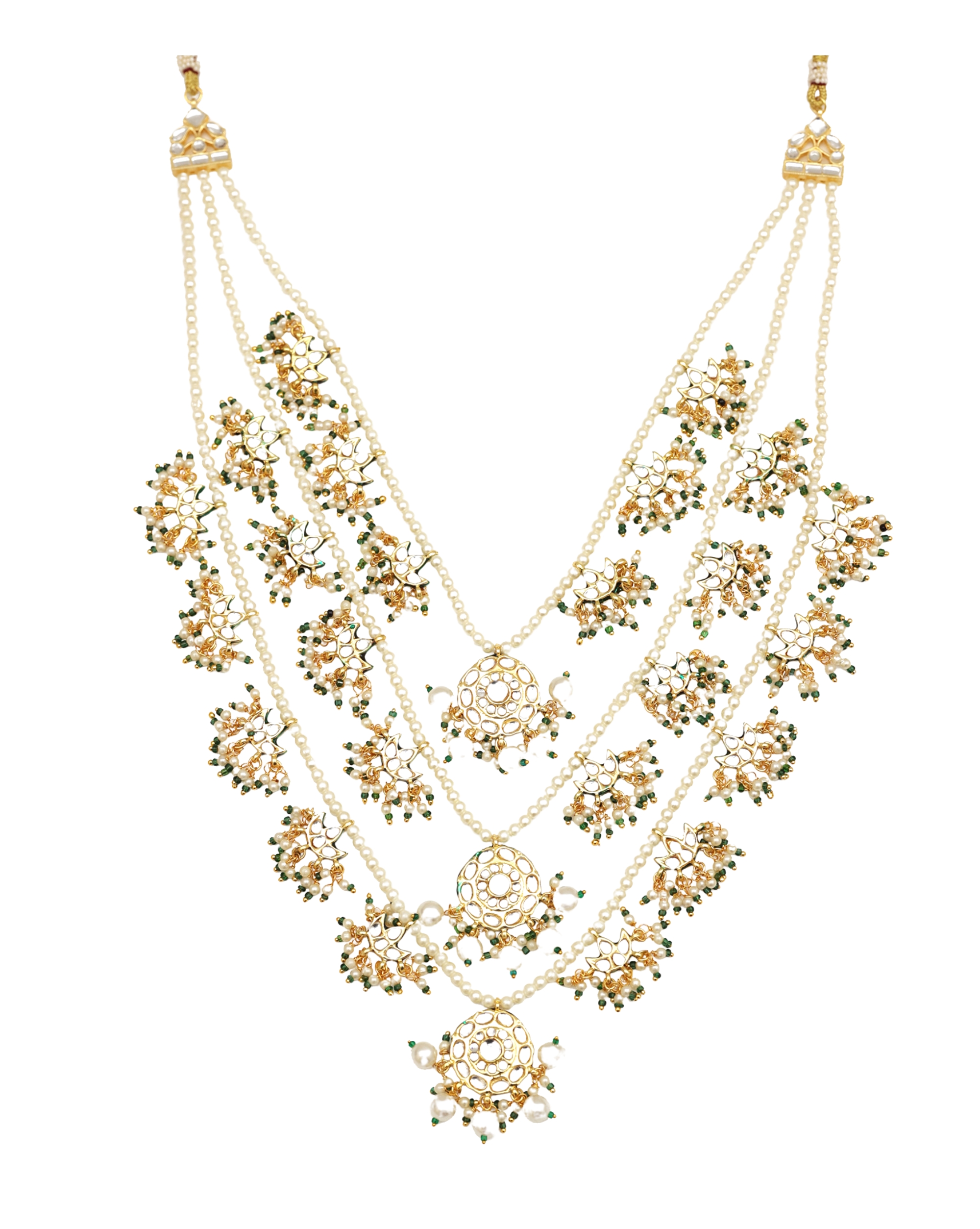 Traditional Indian 3 layered Pearl Gold-Plated Kundan Necklace Set