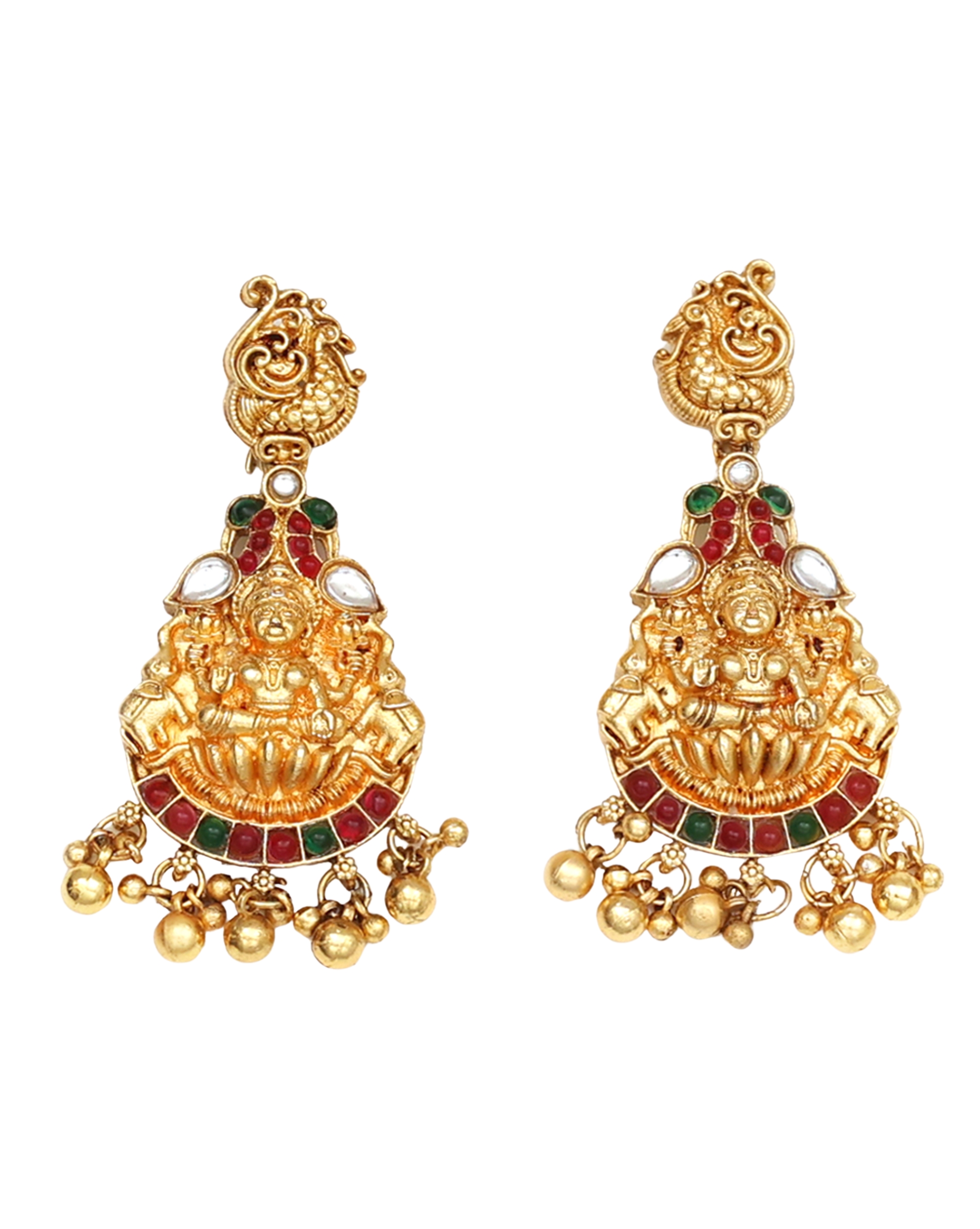 Gold-Plated Lakshmi Design Necklace with Jhumka Earrings