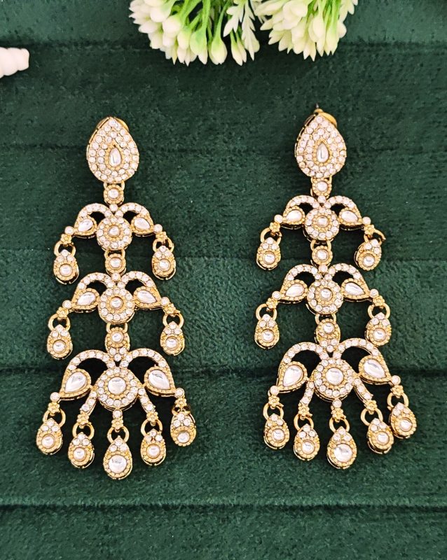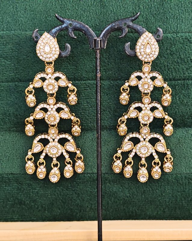 Crystal Chandelier Drop Earrings, Mehendi Polish, Traditional Design with Teardrop Stones