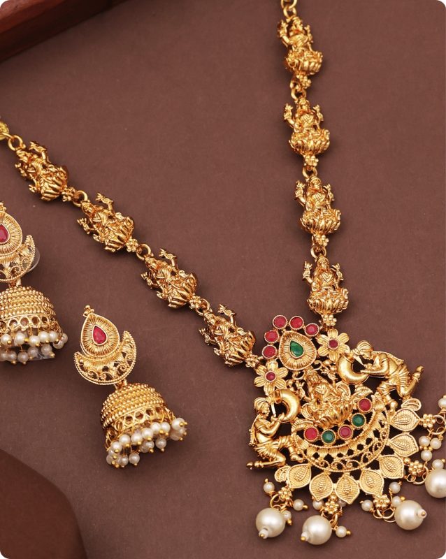 Gold-Plated Lakshmi Design Necklace with Jhumka Earrings