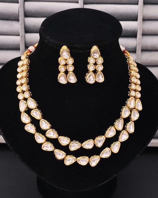 Double Layer Polki Kundan Necklace Set with Statement Earrings