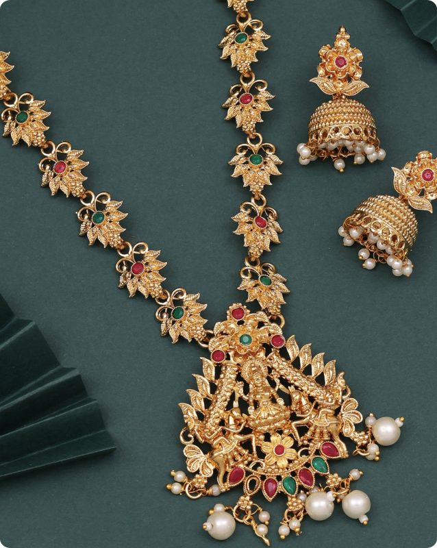 Gold-Plated Lakshmi Design Necklace with Jhumka Earrings